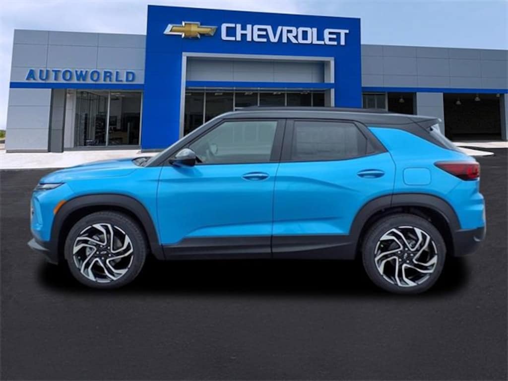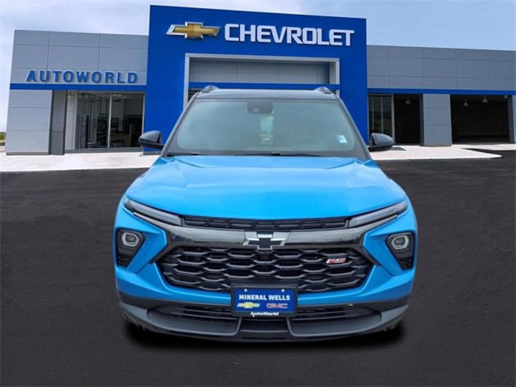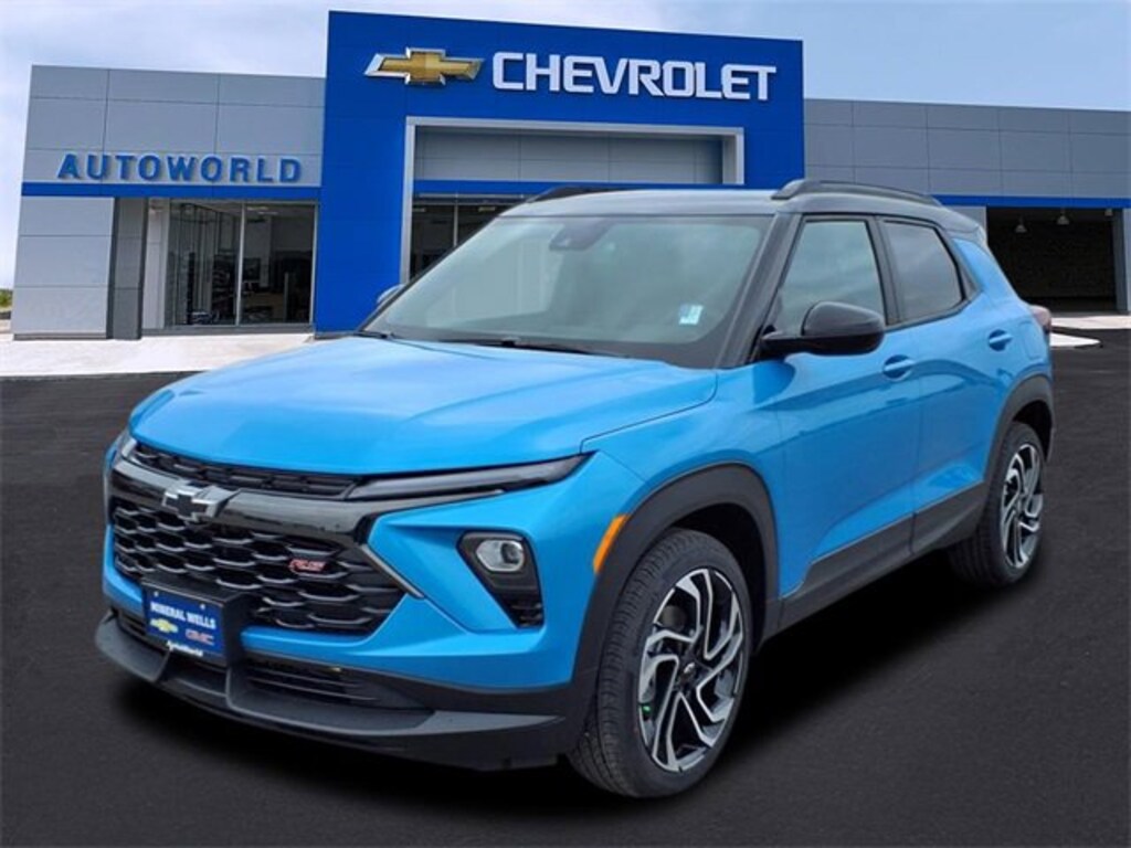 This 2025 Chevrolet TrailBlazer RS in Marina Blue Metallic comes with the following features: 1.3L Ecotec Turbo DOHC SIDI w/VVT CVT FWD Adaptive Cruise & Sound Package (Adaptive Cruise Control and Bose Premium 7-Speaker Audio System Feature), Convenience Package (1 Type-A & 1 Type-C USB Charging-Only Ports, 120-Volt Power Outlet, Cabin Humidity Sensor, Dr & Fr Passenger Illuminated Vanity Mirrors, Hands Free Power Programmable Liftgate, Inside Rear-View Auto-Dimming Mirror, Single-Zone Automatic Climate Control, and Wireless Charging), Driver Confidence Package (Lane Change Alert w/Side Blind Zone Alert, Rear Cross Traffic Alert, and Rear Park Assist), Preferred Equipment Group 1RS, Power door mirrors, 1 Type-A & 1 Type-C USB Ports, 2-Way Power Driver Lumbar Seat Adjuster, 4-Way Manual Front Passenger Seat Adjuster, 4-Wheel Disc Brakes, 5.45 Final Drive Axle Ratio, 6 Speakers, 6-Speaker Audio System Feature, 8-Way Power Driver Seat Adjuster, ABS brakes, Air Conditioning, Alloy wheels, AM/FM radio: SiriusXM, Auto High-beam Headlights, Brake assist, Bumpers: body-color, Compass, Delay-off headlights, Driver door bin, Driver vanity mirror, Dual front impact airbags, Dual front side impact airbags, Electronic Stability Control, Emergency communication system: OnStar and Chevrolet connected services capable, Evotex Seat Trim, Exterior Parking Camera Rear, Flat-Folding Front Passenger Seatback, Front anti-roll bar, Front Bucket Seats, Front Center Armrest, Front License Plate Bracket, Front reading lights, Front wheel independent suspension, Fully automatic headlights, Heated door mirrors, Heated Driver & Front Passenger Seats, Heated front seats, Heated steering wheel, Illuminated entry, Knee airbag, Low tire pressure warning, Mosaic Black Metallic Two-Tone Roof, Occupant sensing airbag, Overhead airbag, Overhead console, Panic alarm, Passenger door bin, Passenger vanity mirror, Power driver seat, Power steering, Power windows, Radio data system, Radio: AM/FM Stereo Audio System, Rear seat center armrest, Rear side impact airbag, Rear window defroster, Rear window wiper, Remote keyless entry, Ride & Handling Suspension, Security system, SiriusXM Trial Subscription, Speed control, Split folding rear seat, Spoiler, Steering wheel mounted audio controls, Tachometer, Telescoping steering wheel, Tilt steering wheel, Traction control, Trip computer, Variably intermittent wipers, Wheels: 19 High Gloss Black Machined Aluminum, and Wireless Apple CarPlay/Android Auto.