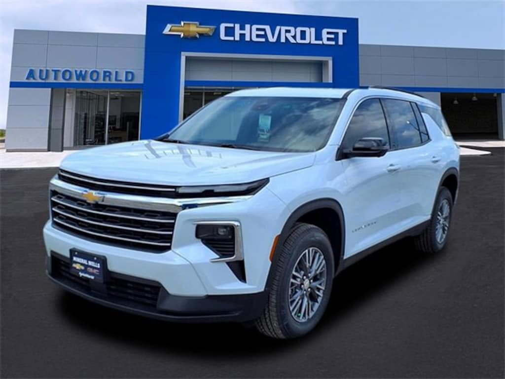 This 2026 Chevrolet Traverse LT in Polar White Tricoat comes with the following features: 2.5L DOHC 8-Speed Automatic FWD Driver Confidence Package (HD Surround Vision, Key Card, Power Outlet, Rear Camera Mirror, Rear Pedestrian Alert, and Traffic Sign Recognition), Preferred Equipment Group 1LT, 3rd row seats: split-bench, 4-Way Manual Front Passenger Seat Adjuster, 6-Speaker Audio System Feature, Front Center Armrest, Front dual zone A/C, Heated Driver & Front Passenger Seats, Navigation System, Power driver seat, Radio: Audio System w/17.7 Diagonal Display, Remote keyless entry, SiriusXM w/360L Trial Subscription, Speed-sensing steering, 4-Wheel Disc Brakes, 6 Speakers, 8-Way Power Driver Seat Adjuster, ABS brakes, Air Conditioning, Alloy wheels, AM/FM radio: SiriusXM with 360L, Apple CarPlay/Android Auto, Auto High-beam Headlights, Automatic temperature control, Brake assist, Bumpers: body-color, Child-Seat-Sensing Airbag, Compass, Delay-off headlights, Driver door bin, Driver vanity mirror, Dual front impact airbags, Dual front side impact airbags, Electronic Stability Control, Emergency communication system: OnStar, Four wheel independent suspension, Front anti-roll bar, Front Bucket Seats, Front reading lights, Fully automatic headlights, Heated door mirrors, Heated front seats, Heated steering wheel, Illuminated entry, Low tire pressure warning, Occupant sensing airbag, Outside temperature display, Overhead airbag, Overhead console, Panic alarm, Passenger door bin, Passenger vanity mirror, Power door mirrors, Power Liftgate, Power steering, Power windows, Premium Cloth Seat Trim, Radio data system, Rear air conditioning, Rear anti-roll bar, Rear reading lights, Rear window defroster, Rear window wiper, Security system, Speed control, Spoiler, Steering wheel mounted audio controls, Tachometer, Telescoping steering wheel, Tilt steering wheel, Traction control, Trip computer, Turn signal indicator mirrors, Variably intermittent wipers, Voltmeter, and Wheels: 18 Grazen Metallic Machined-Face Aluminum.