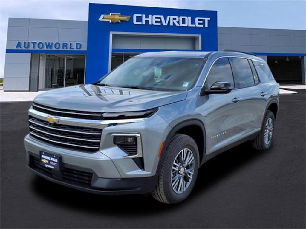 This 2026 Chevrolet Traverse LT in Sterling Gray Metallic comes with the following features: 2.5L DOHC 8-Speed Automatic FWD Driver Confidence Package (HD Surround Vision, Key Card, Power Outlet, Rear Camera Mirror, Rear Pedestrian Alert, and Traffic Sign Recognition), Preferred Equipment Group 1LT, 6-Speaker Audio System Feature, Delay-off headlights, Electronic Stability Control, Navigation System, Passenger door bin, Power Liftgate, Power steering, Rear air conditioning, SiriusXM w/360L Trial Subscription, 3rd row seats: split-bench, 4-Way Manual Front Passenger Seat Adjuster, 4-Wheel Disc Brakes, 6 Speakers, 8-Way Power Driver Seat Adjuster, ABS brakes, Air Conditioning, Alloy wheels, AM/FM radio: SiriusXM with 360L, Apple CarPlay/Android Auto, Auto High-beam Headlights, Automatic temperature control, Brake assist, Bumpers: body-color, Child-Seat-Sensing Airbag, Compass, Driver door bin, Driver vanity mirror, Dual front impact airbags, Dual front side impact airbags, Emergency communication system: OnStar, Four wheel independent suspension, Front anti-roll bar, Front Bucket Seats, Front Center Armrest, Front dual zone A/C, Front reading lights, Fully automatic headlights, Heated door mirrors, Heated Driver & Front Passenger Seats, Heated front seats, Heated steering wheel, Illuminated entry, Low tire pressure warning, Occupant sensing airbag, Outside temperature display, Overhead airbag, Overhead console, Panic alarm, Passenger vanity mirror, Power door mirrors, Power driver seat, Power windows, Premium Cloth Seat Trim, Radio data system, Radio: Audio System w/17.7 Diagonal Display, Rear anti-roll bar, Rear reading lights, Rear window defroster, Rear window wiper, Remote keyless entry, Security system, Speed control, Speed-sensing steering, Spoiler, Steering wheel mounted audio controls, Tachometer, Telescoping steering wheel, Tilt steering wheel, Traction control, Trip computer, Turn signal indicator mirrors, Variably intermittent wipers, Voltmeter, and Wheels: 18 Grazen Metallic Machined-Face Aluminum.