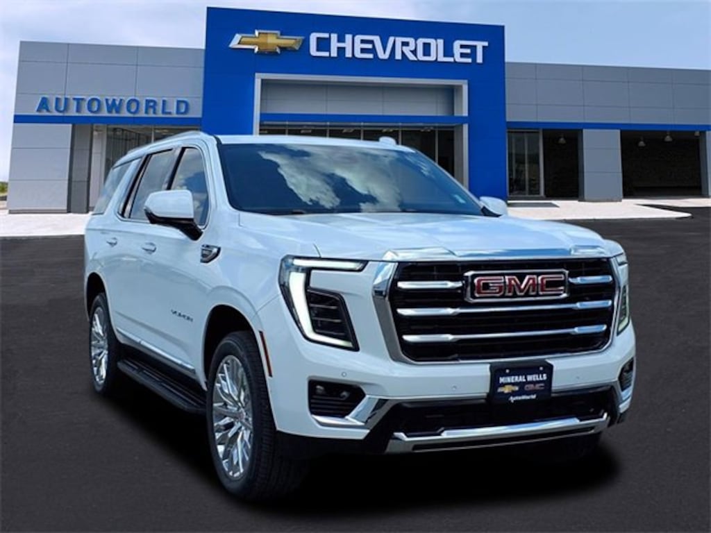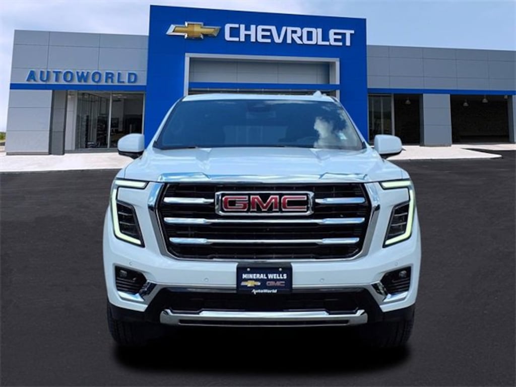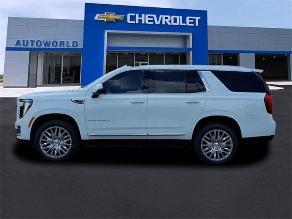 This 2025 GMC Yukon Elevation in Summit White comes with the following features: EcoTec3 5.3L V8 10-Speed Automatic with Overdrive RWD License Plate Front Mounting Package, Preferred Equipment Group 4SA, 10 Speakers, 3.23 Rear Axle Ratio, 3rd row seats: split-bench, 4-Wheel Disc Brakes, ABS brakes, Air Conditioning, Alloy wheels, AM/FM radio: SiriusXM with 360L, Apple CarPlay/Android Auto, Audio memory, Auto High-beam Headlights, Auto-dimming door mirrors, Auto-dimming Rear-View mirror, Automatic temperature control, Bodyside moldings, Bose 10-Speaker Surround w/CenterPoint, Brake assist, Bumpers: body-color, Compass, CoreTec/Perforated Leather-Appointed Seating, Delay-off headlights, Driver door bin, Driver vanity mirror, Dual front impact airbags, Dual front side impact airbags, Dual-Pane Panoramic Power Sunroof, Electronic Stability Control, Emergency communication system: OnStar and GMC connected services capable, Exterior Parking Camera Rear, Floor Console, Four wheel independent suspension, Front anti-roll bar, Front Bucket Seats, Front Center Armrest, Front dual zone A/C, Front fog lights, Front reading lights, Fully automatic headlights, Garage door transmitter, Heated door mirrors, Heated Driver & Front Passenger Seats, Heated front seats, Heated rear seats, Heated steering wheel, Illuminated entry, Low tire pressure warning, Memory seat, Navigation system: GMC Connected Navigation, Occupant sensing airbag, Outside temperature display, Overhead airbag, Overhead console, Panic alarm, Passenger door bin, Passenger vanity mirror, Power door mirrors, Power driver seat, Power Liftgate, Power passenger seat, Power Release 2nd Row Bucket Seats, Power steering, Power windows, Premium Smooth Ride Suspension, Radio: 16.8 Diagonal Premium GMC Infotainment Sys, Rain sensing wipers, Rear air conditioning, Rear anti-roll bar, Rear reading lights, Rear seat center armrest, Rear window defroster, Rear window wiper, Remote keyless entry, Security system, SiriusXM w/360L, Speed control, Speed-sensing steering, Split folding rear seat, Spoiler, Steering wheel mounted audio controls, Tachometer, Telescoping steering wheel, Tilt steering wheel, Traction control, Trip computer, Turn signal indicator mirrors, Variably intermittent wipers, Voltmeter, Wheel Locks (Set of 4) (LPO), Wheels: 20 x 9 Machined & Painted, and Wheels: 22 x 9 Polished Aluminum.