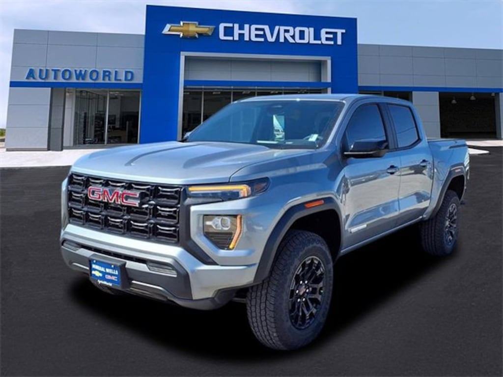 This 2026 GMC Canyon Elevation in Sterling Metallic comes with the following features: 2.7L I4 Turbocharged DOHC 16V LEV3-SULEV30 310hp 8-Speed Automatic RWD Canyon Safety Plus Package (Blind Zone Steering Assist w/Trailering, Rear Cross Traffic Braking, and Ultrasonic Rear Park Assist), Preferred Equipment Group 2VL (Automatic Emergency Braking, Canyon Pro Safety, Following Distance Indicator, Forward Collision Alert, Front Pedestrian & Bicyclist Braking, IntelliBeam Automatic High Beam On/Off, and Lane Keep Assist w/Lane Departure Warning), 1 Rear USB Port in Center Console (Charge-Only), 2 1st Row USB Charge/Data Ports, 6-Speaker Audio System Feature, Navigation System, Off-Road Suspension, Power windows, Radio: 11.3 Diagonal Premium GMC Infotainment Sys, SiriusXM w/360L, Wireless Apple CarPlay/Wireless Android Auto, 3.42 Rear Axle Ratio, 4-Way Manual Front Passenger Seat Adjuster, 4-Wheel Disc Brakes, 6 Speakers, 6-Way Manual Driver Seat Adjuster, ABS brakes, Air Conditioning, Alloy wheels, AM/FM radio, Apple CarPlay/Android Auto, Auto High-beam Headlights, Automatic Stop/Start, Brake assist, Bumpers: body-color, Cloth Seat Trim, Compass, Delay-off headlights, Driver door bin, Driver vanity mirror, Dual front impact airbags, Dual front side impact airbags, Electronic Stability Control, Emergency communication system: OnStar, Front anti-roll bar, Front Bucket Seats, Front Center Armrest, Front License Plate Kit, Front Passenger Seatback Map Pocket, Front wheel independent suspension, Heated door mirrors, Illuminated entry, Low tire pressure warning, Occupant sensing airbag, Outside temperature display, Overhead airbag, Overhead console, Panic alarm, Passenger door bin, Passenger vanity mirror, Power door mirrors, Power steering, Radio data system, Rear reading lights, Rear step bumper, Rear window defroster, Remote keyless entry, Security system, Speed control, Speed-sensing steering, Split folding rear seat, Spray-On Bedliner w/GMC Logo, Steering wheel mounted audio controls, Stop/Start System Disable Button Engine Control, Tachometer, Tilt steering wheel, Traction control, Trip computer, Variably intermittent wipers, and Wheels: 18 x 8.5 Gloss Black Finish Aluminum.
