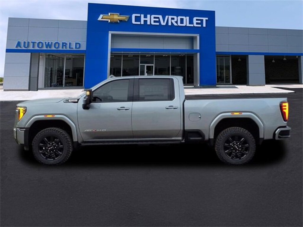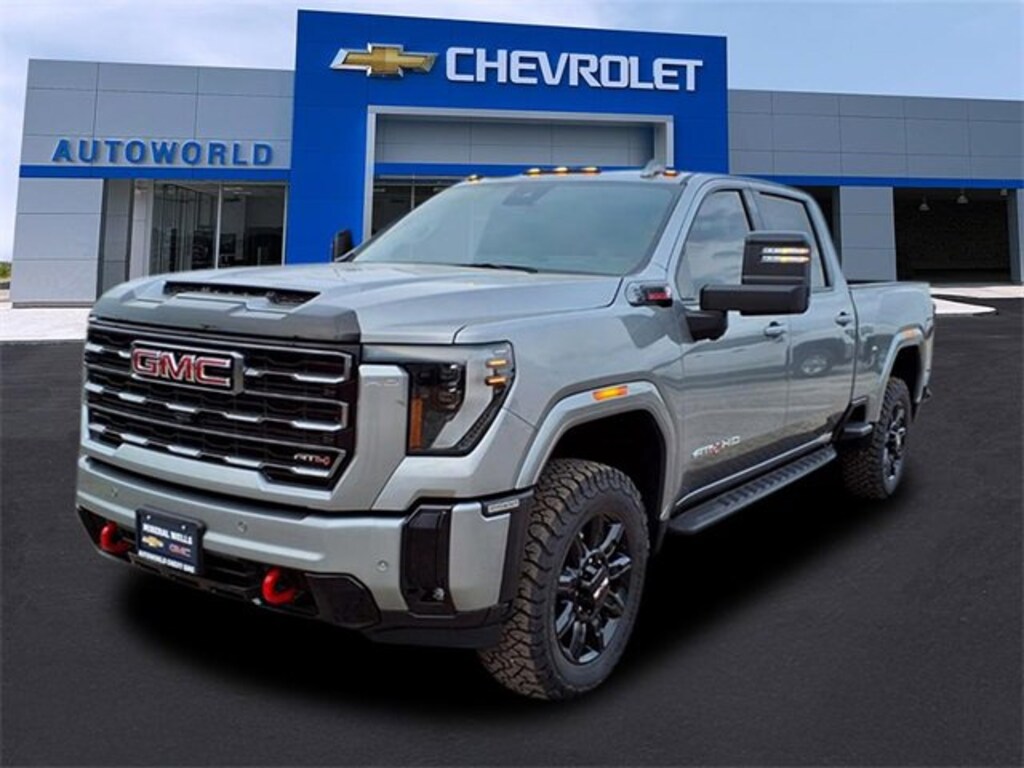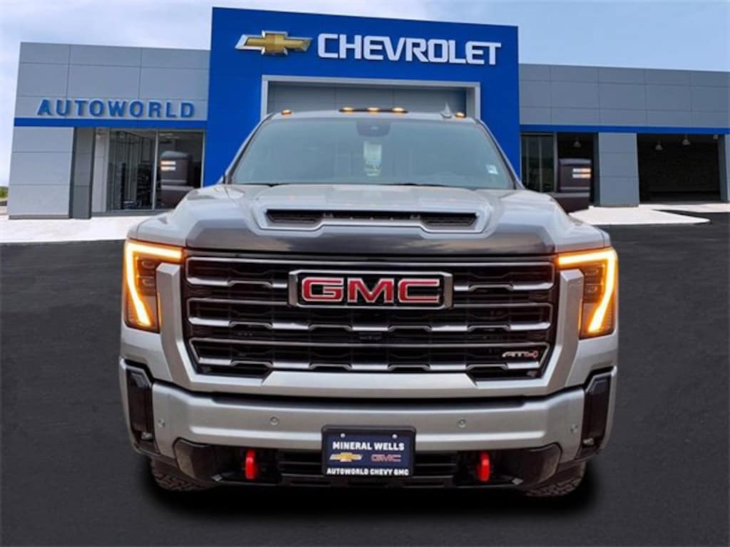 This 2026 GMC Sierra 2500HD AT4 in Sterling Metallic comes with the following features: Duramax 6.6L V8 Turbodiesel 10-Speed Automatic 4WD AT4 Preferred Package (LED Smoked Amber Roof Marker Lamps), AT4 Premium Plus Package (Off-Road High Clearance Step (LPO) and Power Sunroof), Gooseneck/5th Wheel Prep Package, Technology Package, X31 Off-Road Package (Hill Descent Control), 10-Way Power Driver Seat Adjuster w/Lumbar, 10-Way Power Passenger Seat Adjuster w/Lumbar, 120-Volt Bed Mounted Power Outlet, 120-Volt Instrument Panel Power Outlet, 2 Charge-Only Rear USB Ports, 2 Charge/Data USB Ports Inside Center Console, 2 USB Ports, 2-Speed Active Transfer Case, 3 Years SiriusXM, 4-Wheel Disc Brakes, 7 Speakers, ABS brakes, Air Conditioning, Alloy wheels, AM/FM radio: SiriusXM with 360L, Apple CarPlay/Android Auto, Auto High-beam Headlights, Auto-dimming door mirrors, Auto-dimming Rear-View mirror, Automatic Emergency Braking, Automatic temperature control, Bed View Camera w/2 Trailer Camera Provisions, Body Color Wheel Arch Moldings (LPO), Bose Premium 7-Speaker Sound System, Brake assist, Buckle to Drive, Bumpers: body-color, Compass, Deep-Tinted Glass, Delay-off headlights, Driver door bin, Driver Memory, Driver vanity mirror, Dual front impact airbags, Dual front side impact airbags, Electric Rear-Window Defogger, Electronic Stability Control, Emergency communication system: OnStar, Floor-Mounted Center Console, Following Distance Indicator, Forward Collision Alert, Front anti-roll bar, Front Bucket Seats, Front Center Armrest, Front dual zone A/C, Front fog lights, Front Pedestrian Braking, Front Prem Floor Liners w/Removable Carpet Insert, Front Rain-Sensing Wipers, Front reading lights, Front wheel independent suspension, Fully automatic headlights, Gloss Black Header Grille & Grille Insert Bars, GMC MultiPro Tailgate Step Lights (LPO), HD Surround Vision, Heated 2nd Row Outboard Seats, Heated door mirrors, Heated Driver & Front Outboard Passenger Seats, Heated front seats, Heated rear seats, Heated steering wheel, Heavy-Duty 80 Amp Battery, High Idle Switch, Hitch Guidance w/Hitch View, Illuminated entry, In-Vehicle Trailering System App, IntelliBeam Automatic High Beam On/Off, Keyless Open & Start, Lane Departure Warning System, LED Cargo Area Lighting, Low tire pressure warning, Manual Tilt-Wheel/Telescoping Steering Column, Memory seat, Occupant sensing airbag, Off-Road Suspension, OnStar Services Capable, Outside temperature display, Overhead airbag, Overhead console, Panic alarm, Passenger door bin, Passenger vanity mirror, Perforated Leather-Appointed Front Seat Trim, Pickup Box, Power door mirrors, Power driver seat, Power Front Passenger Windows w/Express Up/Down, Power passenger seat, Power steering, Power windows, Premium audio system: Premium GMC Infotainment System, Push Button Start, Radio: AM/FM w/Premium GMC Infotainment System, Rain sensing wipers, Rear Cross Traffic Alert, Rear Prem Floor Liners w/Removable Carpet Insert, Rear reading lights, Rear seat center armrest, Rear step bumper, Rear Wheelhouse Liners, Rear window defroster, Remote keyless entry, Remote Vehicle Starter System, Safety Alert Seat, Security system, SiriusXM w/360L Trial Subscription, Speed control, Speed-sensing steering, Split folding rear seat, Spray-On Pickup Bedliner w/GMC Logo, Steering Wheel Audio Controls, Steering wheel mounted audio controls, Tachometer, Telescoping steering wheel, Tilt steering wheel, Traction control, Trailer Cam Provisions & Trailer Viewing Software, Trailer Side Blind Zone Alert, Trip computer, Turn signal indicator mirrors, Ultrasonic Front & Rear Park Assist, Unauthorized