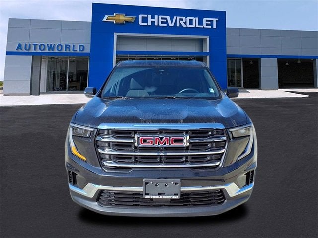 This 2025 GMC Acadia Elevation in Ebony Twilight Metallic comes with the following features: 2.5L DOHC 8-Speed Automatic AWD Preferred Equipment Group 4SD, 12 Speakers, 18 x 7.5 Aluminum Wheels, 2-Way Driver Power Lumbar Seat Adjuster, 3.49 Final Drive Axle Ratio, 3rd row seats: split-bench, 4-Way Manual Front Passenger Seat Adjuster, 4-Wheel Disc Brakes, 8-Passenger Seating (2-3-3 Seating Configuration), 8-Way Power Driver Seat Adjuster, ABS brakes, Air Conditioning, Alloy wheels, AM/FM radio: SiriusXM with 360L, Apple CarPlay/Android Auto, Auto High-beam Headlights, Auto-dimming Rear-View mirror, Automatic temperature control, Bodyside moldings, Brake assist, Bumpers: body-color, Cloth Seat Trim, Compass, Delay-off headlights, Driver door bin, Driver vanity mirror, Dual front impact airbags, Dual front side impact airbags, Electronic Stability Control, Emergency communication system: OnStar Services capable, Exterior Parking Camera Rear, Four wheel independent suspension, Front anti-roll bar, Front Bucket Seats, Front Center Armrest, Front dual zone A/C, Front fog lights, Front License Plate Bracket, Front reading lights, Fully automatic headlights, Heated door mirrors, Heated front seats, Heated steering wheel, Illuminated entry, Leather steering wheel, Low tire pressure warning, Navigation System, Occupant sensing airbag, Outside temperature display, Overhead airbag, Overhead console, Panic alarm, Passenger door bin, Passenger vanity mirror, Power door mirrors, Power driver seat, Power Liftgate, Power steering, Power windows, Radio data system, Rear air conditioning, Rear anti-roll bar, Rear reading lights, Rear seat center armrest, Rear side impact airbag, Rear window defroster, Rear window wiper, Remote keyless entry, Security system, Speed control, Speed-sensing steering, Split folding rear seat, Spoiler, Sport steering wheel, Steering wheel mounted audio controls, Tachometer, Telescoping steering wheel, Tilt steering wheel, Traction control, Trip computer, Turn signal indicator mirrors, Variably intermittent wipers, and Voltmeter.