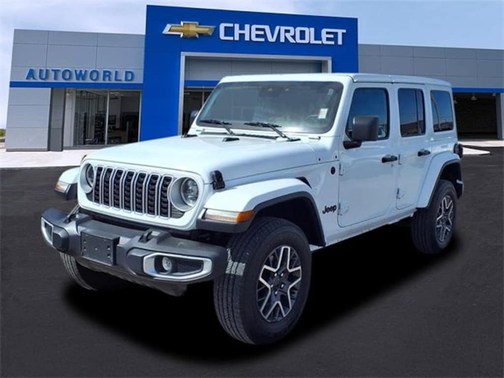 This 2025 Jeep Wrangler Sahara in Bright White Clearcoat comes with the following features: 2.0L I4 DOHC 8-Speed Automatic 4WD Quick Order Package 22G Sahara, 110 MPH Vehicle Max Speed Calibration, 3.45 Overall Top Gear Ratio, 4-Wheel Disc Brakes, 4G LTE Wi-Fi Hot Spot, 8 Speakers, ABS brakes, Air Conditioning, Alloy wheels, AM/FM radio: SiriusXM, Apple CarPlay, Apple CarPlay/Android Auto, Automatic temperature control, Aux Battery, Body Color 3-Piece Hard Top, Brake assist, Cloth Low-Back Bucket Seats, Compass, Connectivity - US/Canada, Delay-off headlights, Driver door bin, Driver vanity mirror, Dual front impact airbags, Dual front side impact airbags, Electronic Stability Control, Emergency communication system: Jeep Connect, Freedom Panel Storage Bag, Front anti-roll bar, Front Bucket Seats, Front Center Armrest w/Storage, Front dual zone A/C, Front fog lights, Front License Plate Bracket (DISC), Front reading lights, Fully automatic headlights, Google Android Auto, Heated door mirrors, Heated front seats, Heated steering wheel, Heavy Duty Suspension w/Gas Shocks, Illuminated entry, Integrated Center Stack Radio, Integrated roll-over protection, Low tire pressure warning, Non-Lock Fuel Cap w/o Discriminator, Occupant sensing airbag, Outside temperature display, Overhead airbag, Panic alarm, ParkView Rear Back-Up Camera, Passenger door bin, Passenger vanity mirror, Power door mirrors, Power steering, Power windows, Radio data system, Radio: Uconnect 5 w/12.3 Display, Rear anti-roll bar, Rear reading lights, Rear Window Defroster, Rear Window Wiper/Washer, Remote keyless entry, Security system, Speed control, Split folding rear seat, Steering wheel mounted audio controls, Stop-Start Dual Battery System, Tachometer, Telescoping steering wheel, Tilt steering wheel, Traction control, Trip computer, Variably intermittent wipers, Voltmeter, and Wheels: 18 x 7.5 Machine/Painted Gray.